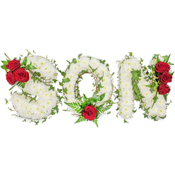 Lovingly crafted and delicately arranged, this letter tribute represents the most sincere love and deep sorrow of losing a loved one. The elegant combination of pure white chrysanthemums and anthurium is creating a very personal and touching funeral arrangement.