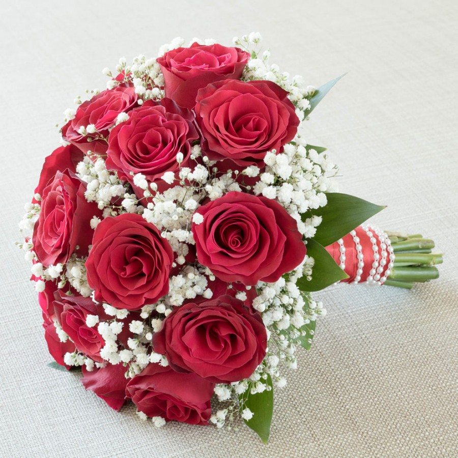 Celebrate your love story with the Forever Yours Bouquet, featuring gorgeous red roses. Combined with lovely gypsophila and lush aralia leaves, this arrangement offers a classic and romantic feel.